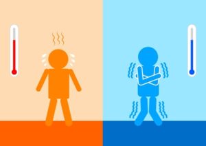 自律神経とは無意識のうちに血圧、呼吸、消化といった身体の機能をコントロールし環境の変化に適応しようとする神経。寒い時にはー体温を上げる働き。暖かい時にはー体温を下げる働きをするのですが、この相反する機能が寒暖差によって頻繁に繰り返されると心身の負担が大きく、バランスの確保がうまく行かなくなり、自律神経の乱れにつながるのです。
